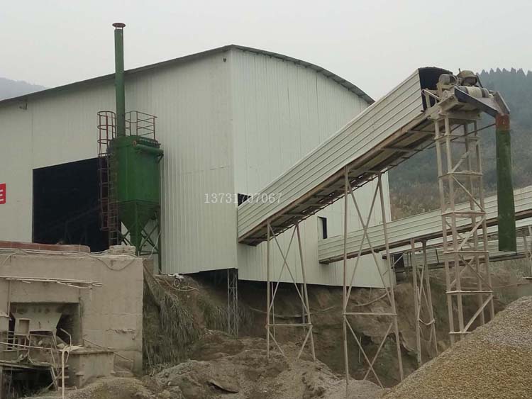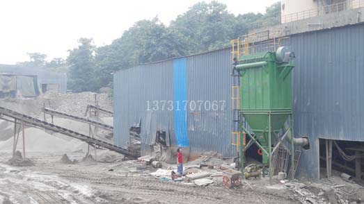 皮帶運輸密閉布置,皮(pí)帶和落料(liào)點分別(bié)布置(zhì)吸塵口,使用一台15KW120型布袋除塵器進行處理。
