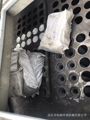 除塵器吸風(fēng)口處(chù)有一個除塵濾袋在袋口損壞,濾布完全(quán)成了黑色,由(yóu)於缺少一(yī)個濾袋,造成除塵器出風口周圍的花板上有一堆(duī)灰塵。