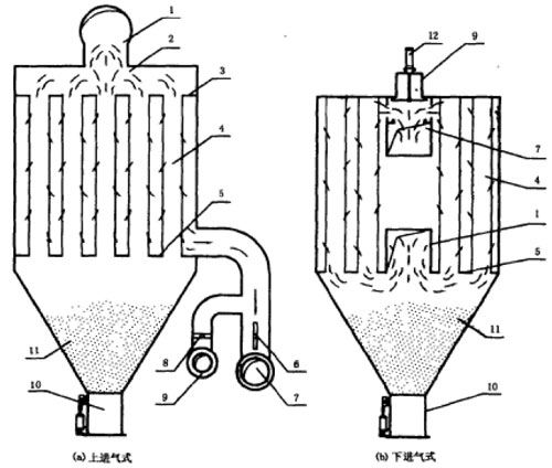 8-清(qīng)灰閥;9-反吹(chuī)風管;10-卸灰閥;11-灰鬥;12-提升切(qiē)換閥