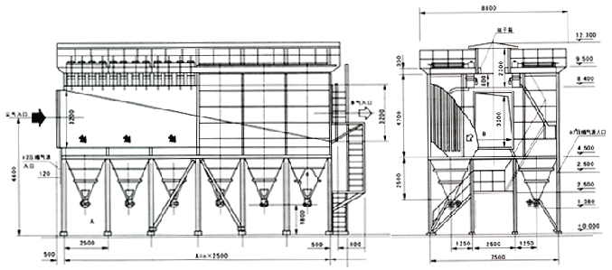 本除塵器是借鑒O外先進技術研製成功的大型脈衝袋式除塵器,是單元組合式(shì)結構,可根據用戶需(xū)要串接或並接組成整體。除塵器具有O能、低消耗的噴吹裝置(zhì),可(kě)實現低壓力、短脈衝並適合長濾(lǜ)袋的清(qīng)灰。除塵器設有預分離導向結構,可使含塵氣體(tǐ)由下部進入,粗顆粒(lì)被分離(lí)流入灰鬥,氣流向上進入濾袋區,可實現順噴,提高清灰效果。