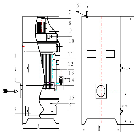 6.根據實際需要,定期進行清除灰塵,集塵(chén)器(qì)內集塵清除時,隻須在風機和清灰(huī)機構工作停止時,打開密封的(de)出灰門,抽(chōu)出抽屜即可。