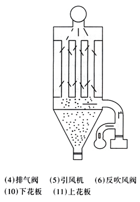 該除塵(chén)設備由(yóu)含塵氣體入口至淨(jìng)化煙氣出口,本體結(jié)構由進(jìn)氣管路、進氣室、袋室、灰鬥、排灰閥、出口管道(dào)及反(fǎn)吹風係統和清灰控製係統所組成。