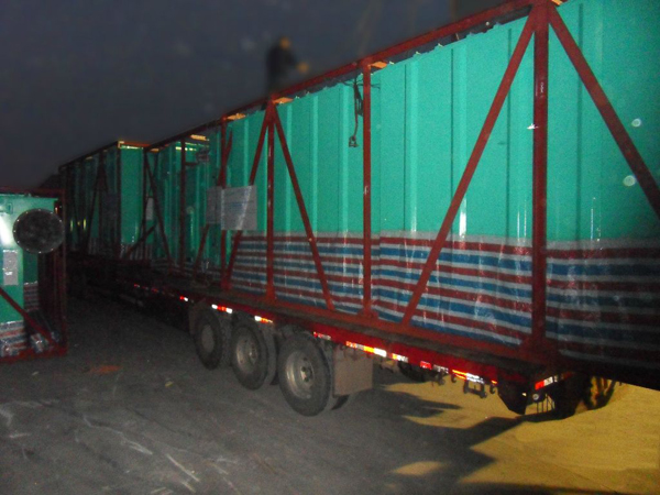 浙江寧波北倫電(diàn)廠粉(fěn)煤灰處理用PPC96-8布袋除塵器(qì)運抵現場,正在卸車。