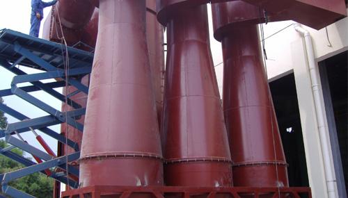 CLK擴散式旋風除塵器,適(shì)用於捕集幹燥的非纖維性的顆(kē)粒狀粉塵,主要特點是(shì)筒身呈圓錐形,因而減少了含塵氣體自筒身中心短路到出口去的可能性,並裝有圓錐形的反射屏,防止兩次氣流將已經分離(lí)下來的粉塵重新卷起,被(bèi)上升氣流帶出,因而提高了除塵效率。