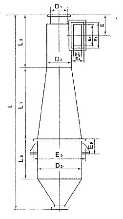 CLK擴散式旋(xuán)風除塵器,適用於捕集(jí)幹燥的非纖(xiān)維性的顆粒狀粉塵,主(zhǔ)要特點是筒身呈圓錐形,因而減少了含塵氣體自筒身中心短路到出口去(qù)的可能性,並裝有圓錐形(xíng)的反射屏,防止兩次氣流將(jiāng)已經分(fèn)離下來的粉塵(chén)重新卷起,被上升氣流帶出(chū),因(yīn)而提高了除塵效率.