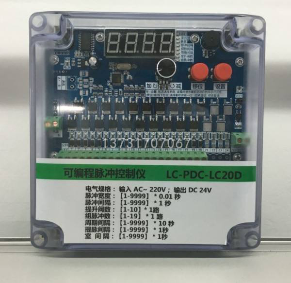 脈衝袋式除塵器控製儀(yí) LC-PDC-ZC30D (在線式 30路 24V),此款控製儀電壓有24V和220V兩款,購買時請告知(zhī)客(kè)服選用電壓,以免為(wéi)您造成不必要的損失。此款脈衝控製儀輸出路(lù)數(shù)可調,凡是所控脈衝閥數量為30個以下,全部(bù)可以使用。