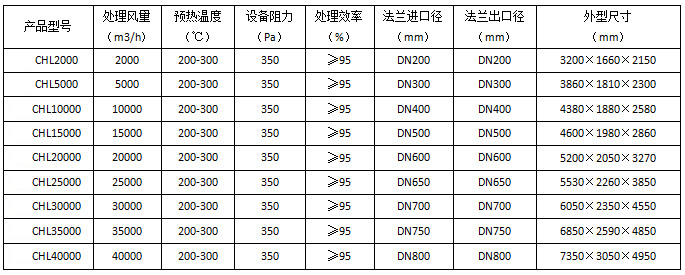 五、RCO催化(huà)燃燒處理設備型號(hào)及參數