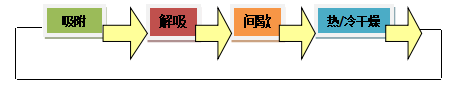 脫附過程結(jié)束(shù)後,吸附器(qì)內(nèi)的溫度(dù)很高,通過間歇(xiē)過(guò)程可使吸附(fù)器放空降(jiàng)溫,以及(jí)通過(guò)調節間歇時(shí)間來(lái)調整總的吸附時間。