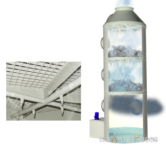 廢氣噴淋(lín)淨化塔的工作原理是將氣(qì)體(tǐ)中的汙染物分離成無害物(wù)質,以達到(dào)淨化氣體的目的,屬於差動(dòng)接觸逆流,塔體填料是氣液接觸的基本(běn)組成部分。進(jìn)入塔體(tǐ)的氣(qì)體進入塔體後,氣(qì)體進入填料層,填充層有頂(dǐng)部的噴淋液和前麵的噴(pēn)淋液,並在填料上形成一層液膜。當氣體流過間隙時(shí),它(tā)與填充物接觸液膜並進行吸收或中和反應。填充層(céng)可以提供足夠大的表麵積。氣體的流動,並(bìng)不會造成太大的(de)阻力,氣(qì)體吸收或中和後被除霧器收集,從塔外的出風口排出。