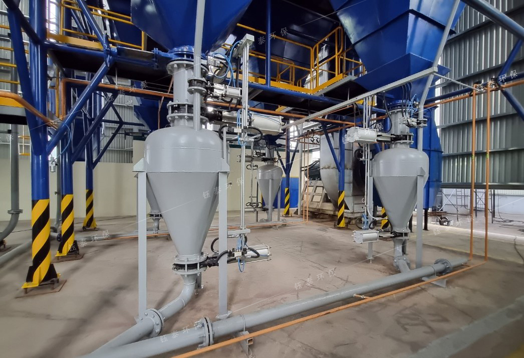 當(dāng)布袋上的(de)粉塵逐漸變厚,阻力增大時(shí),除塵器脈衝閥將向(xiàng)布袋內吹入壓縮(suō)空氣,布袋會膨脹並(bìng)劇烈振動,布袋上的塵粒落入(rù)灰鬥中(zhōng)。落入灰鬥的灰渣由螺旋輸(shū)送機收集至儲灰筒。